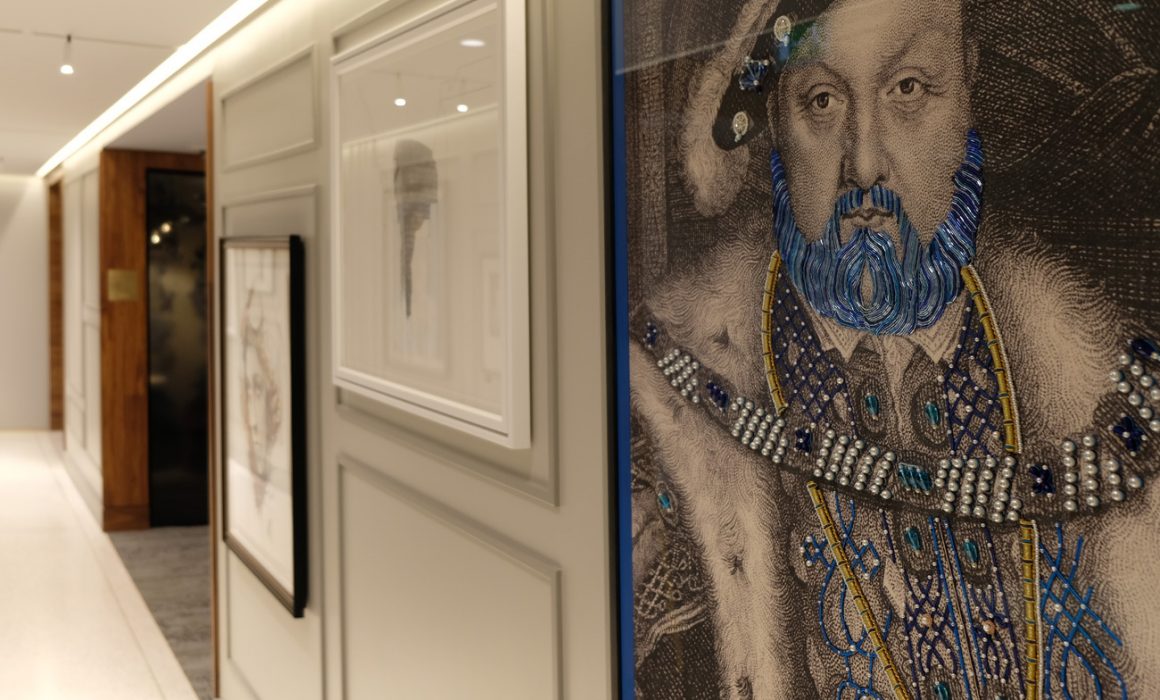 To complete the collection, our own studio created artworks celebrating the many facets of London, old and new. A hand-embroidered interpretation of the London Underground and an Elton John likeness are designed to capture the traveller’s attention. This is a project where art offers a window into a different reality and an escape from the otherwise mundane.